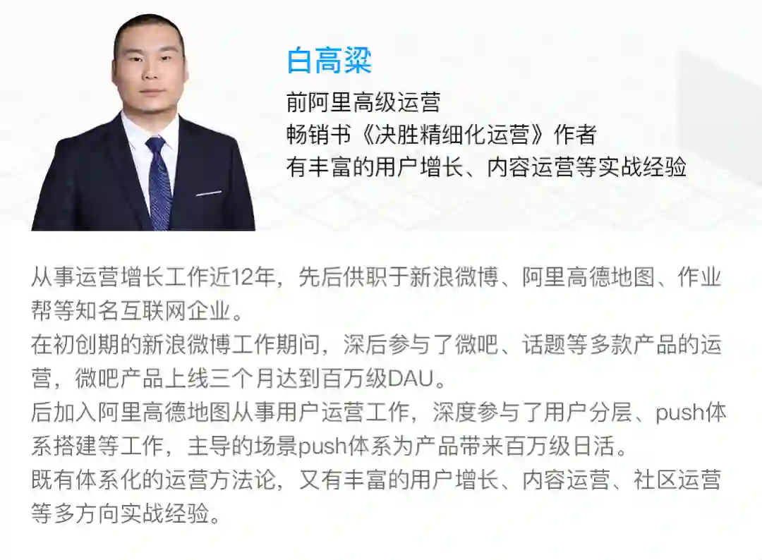 正式推荐我们《90天互联网运营实战班》直播课程,由 腾讯课堂 和 起点课堂 联合办学,针对0-3年运营人专项学习,帮助大家从0到1搭建完整的运营知识框架。