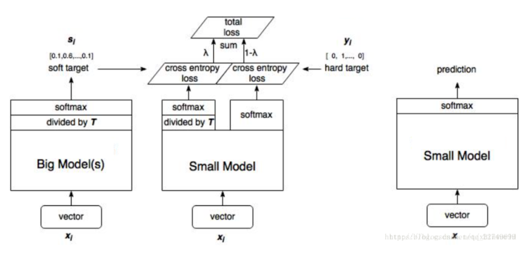 损失函数是软目标损失函数和硬目标损失函数的结合,一般来说,软目标损失函数设置的权重需要大一些效果会更好一点。