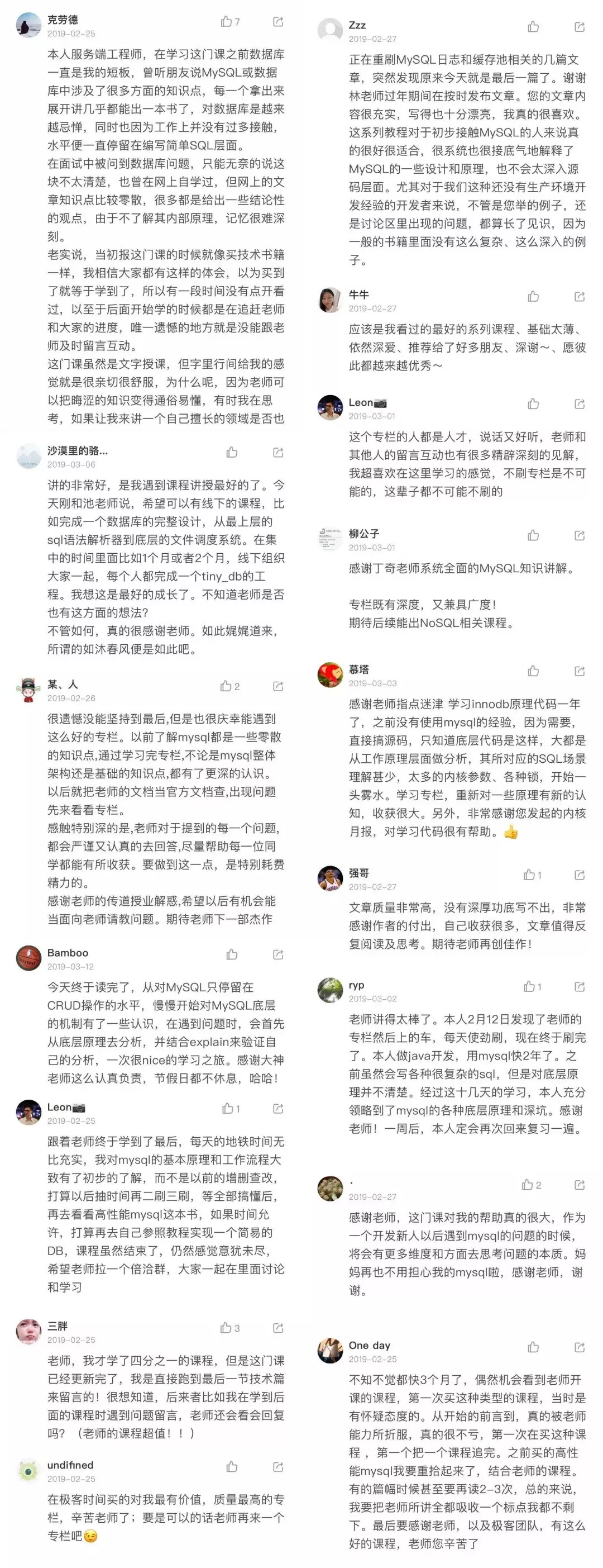 认真学下来,感觉收获很大。这是一个可以长期影响你的专栏:从原理到思维再到实战,是我见过最全面、性价比最高的 MySQL 教程,口碑也不错。