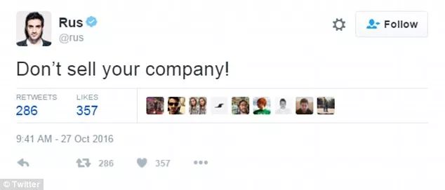 Yusupov 后来发过一条推文:不要卖掉你的公司!
