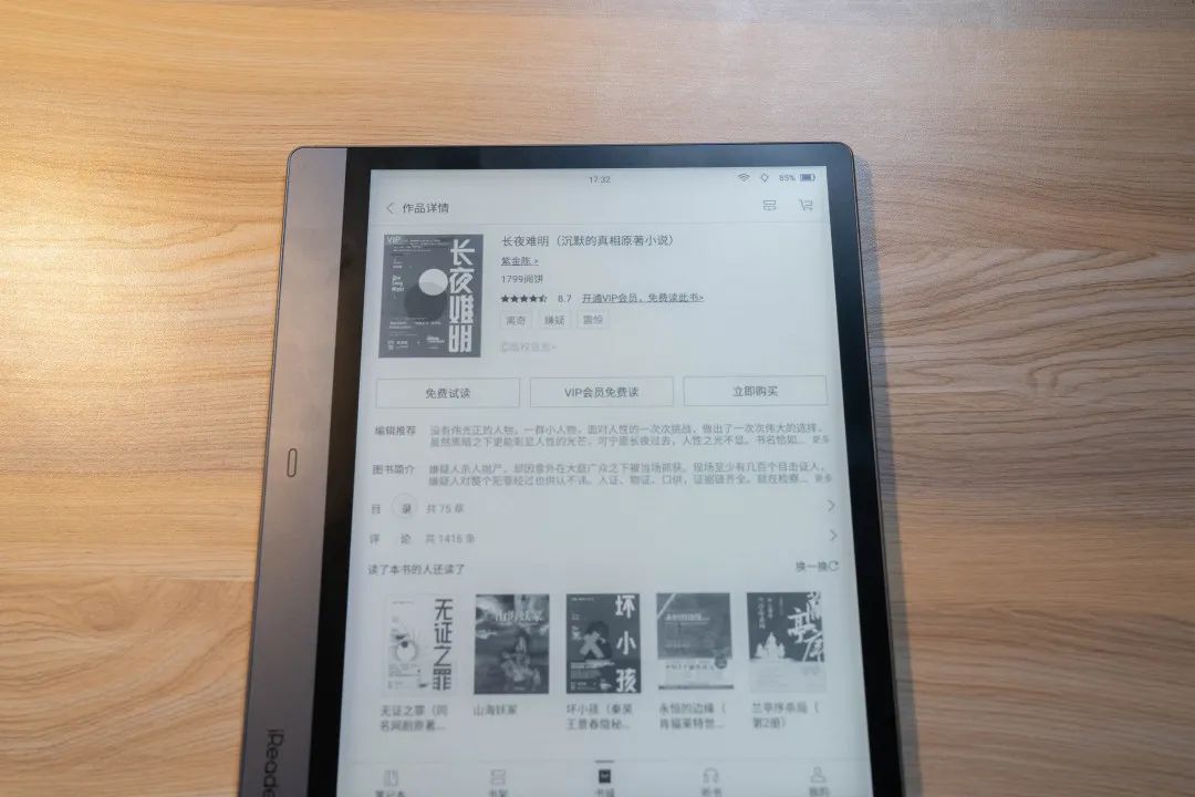 既然是个电子阅读器,那么自然购书的渠道少不了。他书城里面书籍也是相当丰富,例如最近很火的《沉默的真相》原著《长夜难明》,夏目漱石的《我是猫》等等。还有一些音频读物。喜欢读书的小伙伴一定很喜欢!还能调节刷新率,三个档位,适合不同的模式。