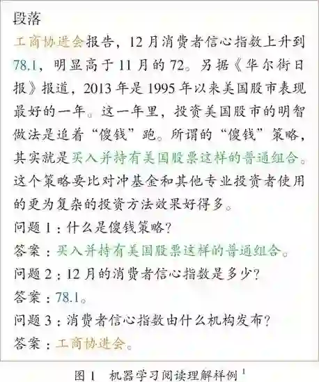 2018年初,在斯坦福大学推出的机器阅读理解数据集SQuAD上,来自微软和阿里巴巴的研究团队均在精确匹配程度指标上超越了人类,相关媒体也发出了“人工智能已经在阅读理解任务上战胜了人类”的口号。但是,相关研究表明,现在的机器阅读理解模型很大程度上依赖于简单的文本匹配。一旦给段落加入干扰信号,模型表现会大幅下降。在文献[13]中,关于SQuAD数据集上表现最好的16个机器阅读理解模型的实验表明,在段落中加入一个干扰句(干扰句和正确答案所在句的文本匹配度高,但关键词不一样)会使得所有模型的F1指标均下降20%~40%,而人类实验者的指标只下降3%。该结果表明,现有的机器学习模型仍远没有达到人类理解文本的精确程度。如何加强模型的深度理解能力是这一领域的重要课题之一。