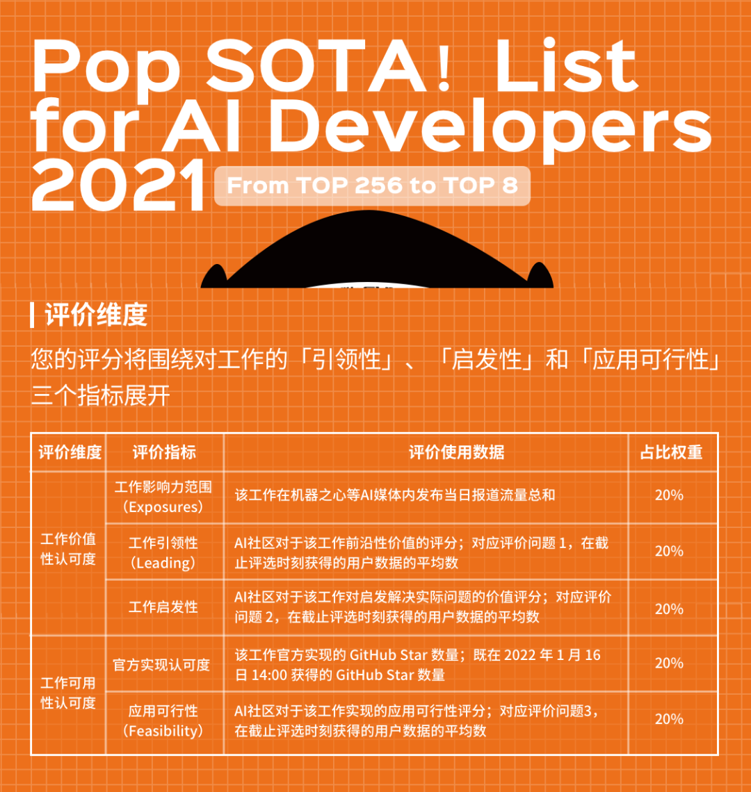 2022 年初,我们对 2021 年度发布于 arXiv 的「SOTA」AI 论文进行了一轮分析,试图找到 2021 年度,对 AI 开发者最具价值的「Pop SOTA!」工作。
