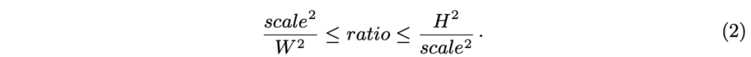 论文对COCO数据集目标的尺寸和长宽比进行统计,并且得到了ratio的上界和下界: