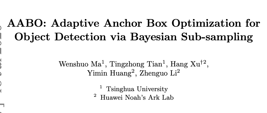 为了人工设置超参数的环节,近年来很多关于超参数优化问题(HPO, hyper-parameter optimization)的研究 ,最有效的方法为 贝叶斯优化(BO)和bandit-based策略 。在分析了当前方法的优劣后,论文提出一种 自适应的anchor box优化方法AABO ,该方法基于贝叶斯优化和Sub-Sample方法,能够自动切高效地搜索到最优的anchor设置,榨干主流目标检测算法的潜力。