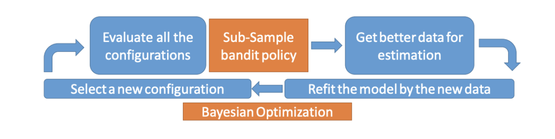 论文提出的搜索方法如图7所示,包含BO和子采样方法,分别用于选择潜在的设置以及为不同的设置分配不同的计算资源。整体思路和BOHB类似,将其中的Hyperband替换成了Sub-Sample方法。