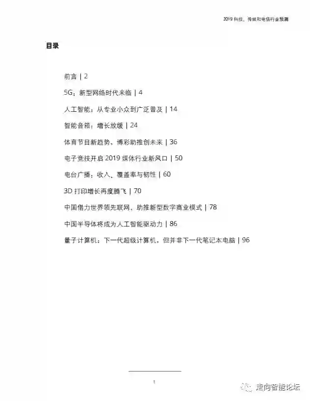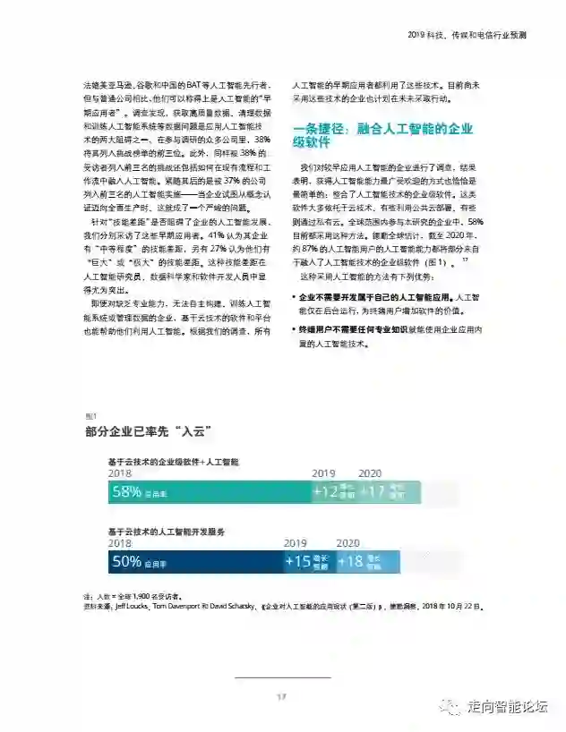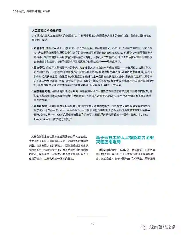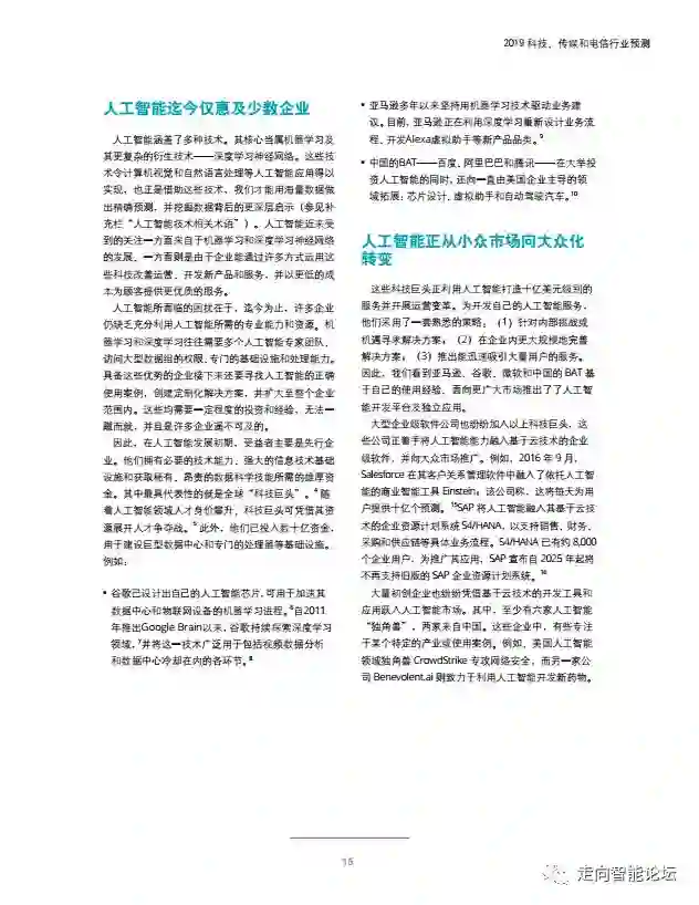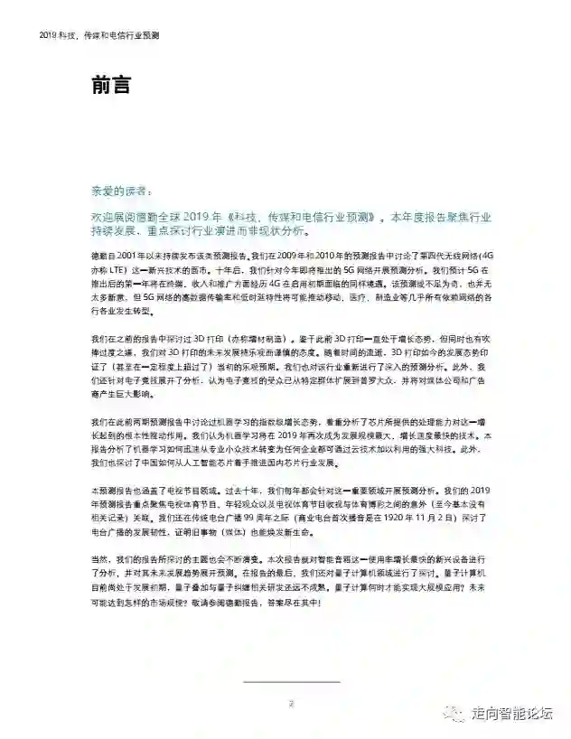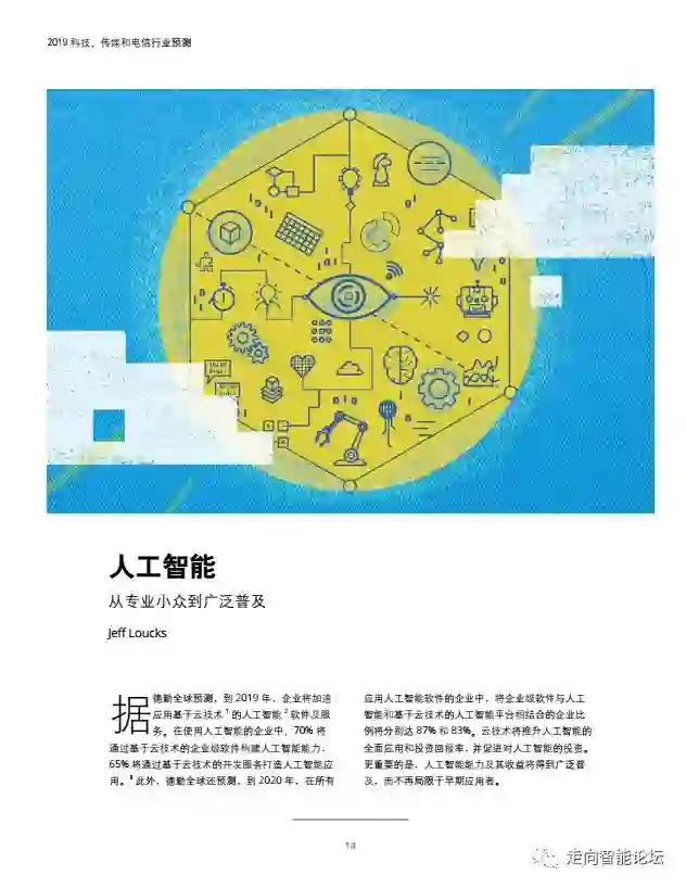 在“走向智能论坛”微信公众号回复“20190115”,可免费下载”德勤:2019科技、传媒和电信行业预测“PDF完整报告
