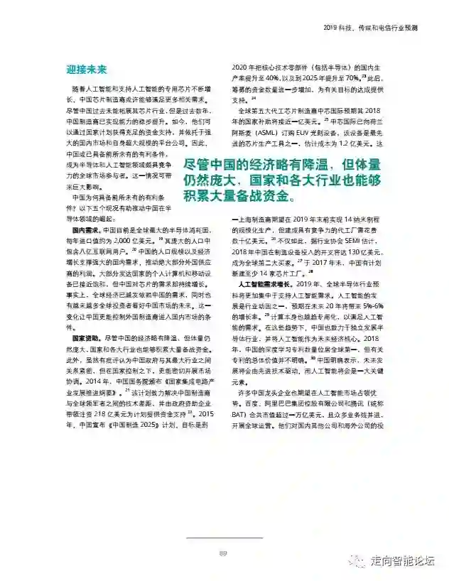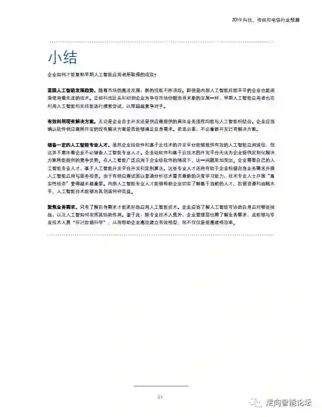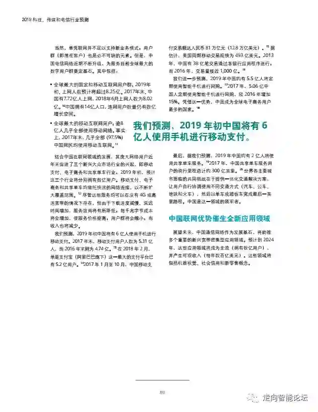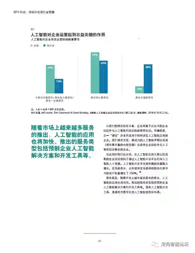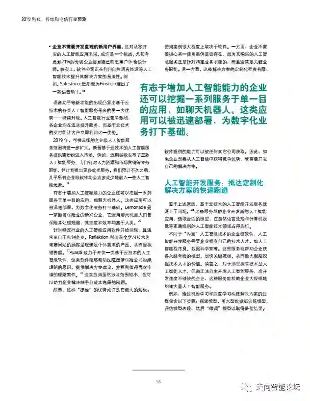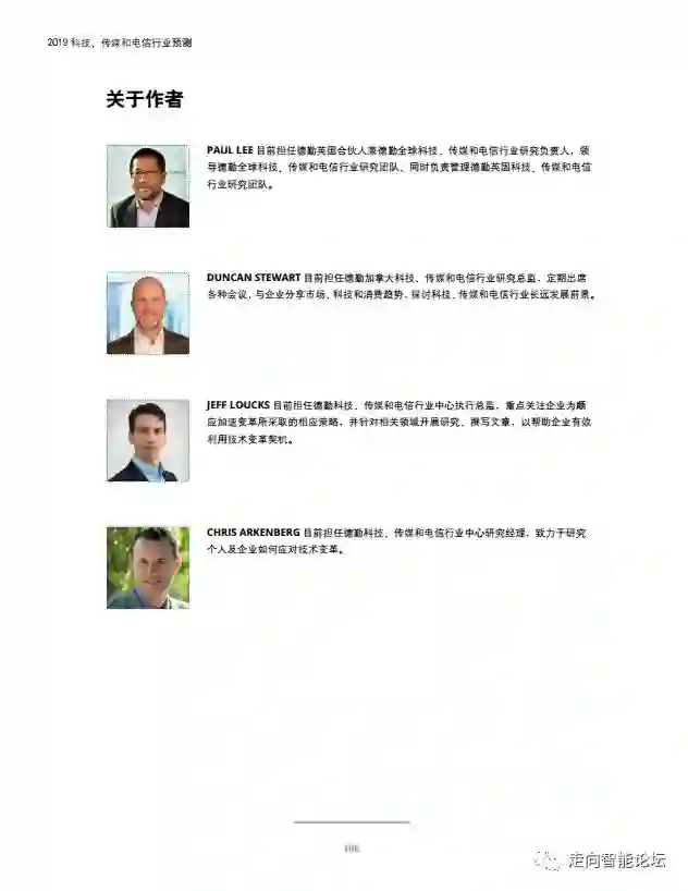在“走向智能论坛”微信公众号回复“20190115”,可免费下载”德勤:2019科技、传媒和电信行业预测“PDF完整报告