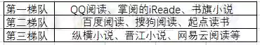 整个移动端形成了三个梯队,阅文旗下的QQ阅读,掌阅的iReader,阿里文学的书旗小说占据了半壁江山。