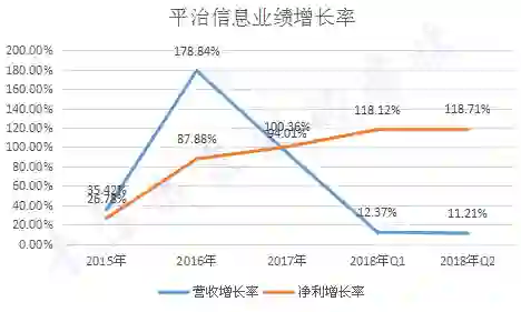 但从两张图对比可以看出,平治信息在2017年底,营收达到顶峰,从2018年开始,增速放缓,而净利润却继续翻着倍的增长。