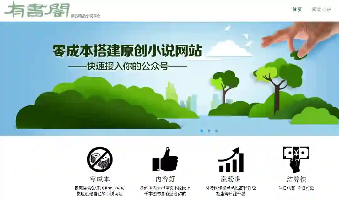作者只要有微信公众号,就可以接入平台,通过系统,作者就可以分销具备版权的小说,只要有读者充值阅读小说,平台就提取10%的费用。