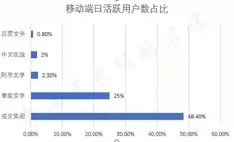 从活跃用户数占比,PC端阅文一家独大,在新兴的移动端,阅文集团也占据了绝对优势,其余几家在背后BAT巨头的支撑下,瓜分了剩下的市场。