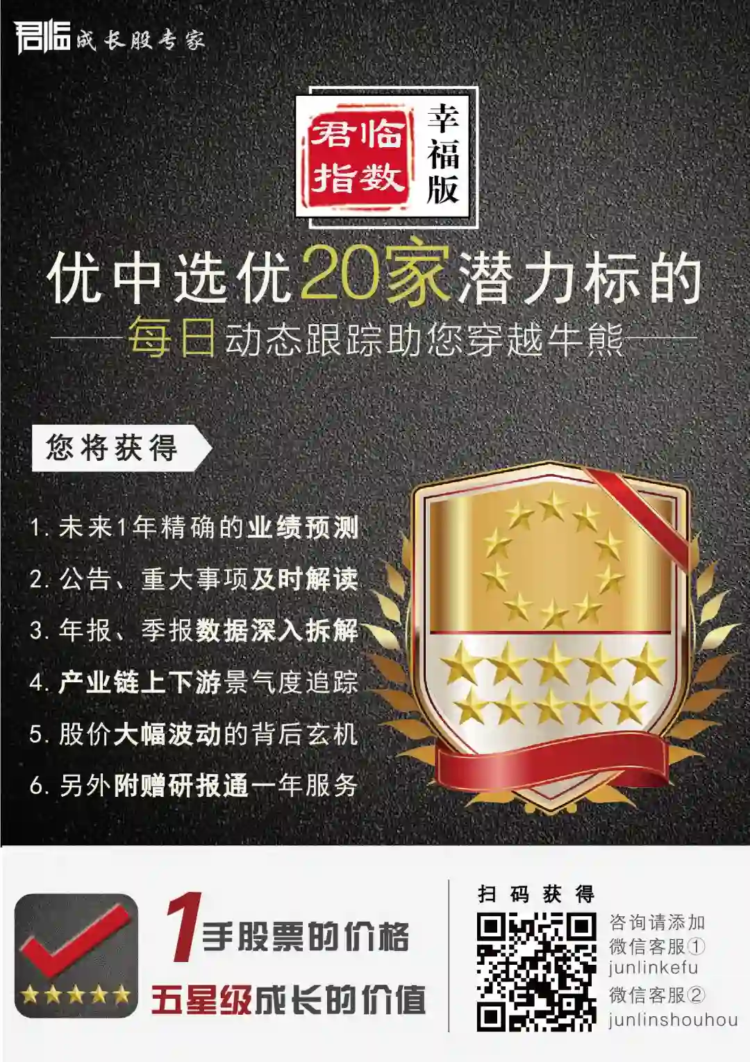 高阶客户推荐订阅君临精英版,跟踪标的扩大到100家,搭建投资组合更Easy!