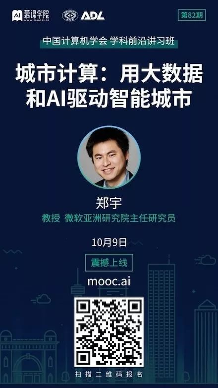 身为微软研究院主任研究员与城市计算领域负责人,又是 CCF ADL 工作组组长,郑宇博士的讲座主题主要围绕在智能城市建设中大数据和 AI 所发挥的叠加作用。