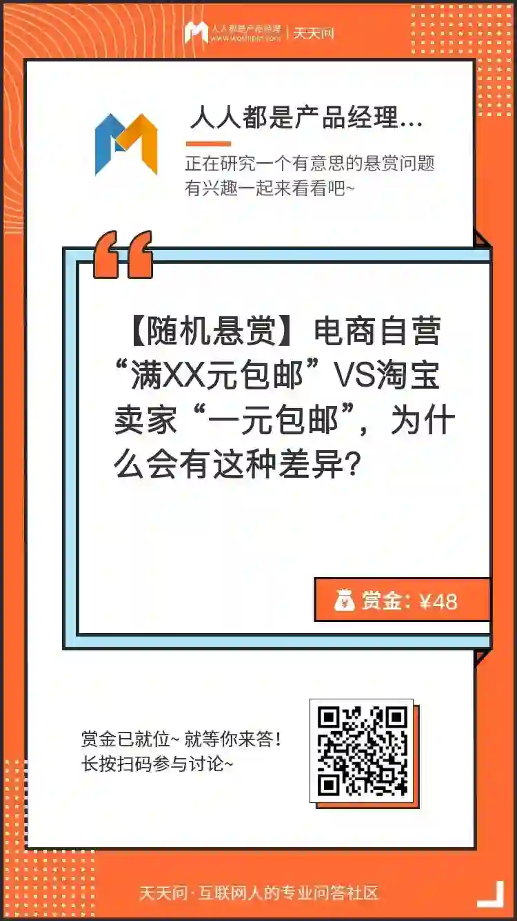 【天天问每周精选】第181期:电商自营“满XX元包邮” VS淘宝卖家 “一元包邮”,为什么会有这种差异?