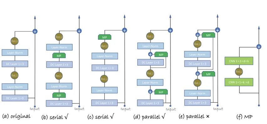 第一、在residual block中以串行的方式插入模型补丁(如上图(b)所示),每个模型补丁(如上图(f)所示)由一个瓶颈结构的残差块构成,且参数量仅有原始空洞卷积的不到十分之一。