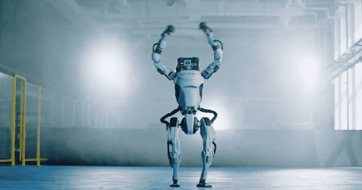 所以这次波士顿动力的上新之作,可以说是让自家机器人拍了一只男团MV了。