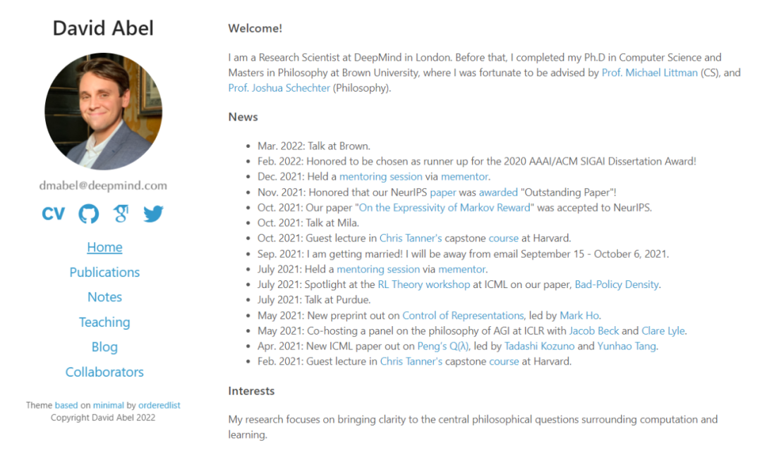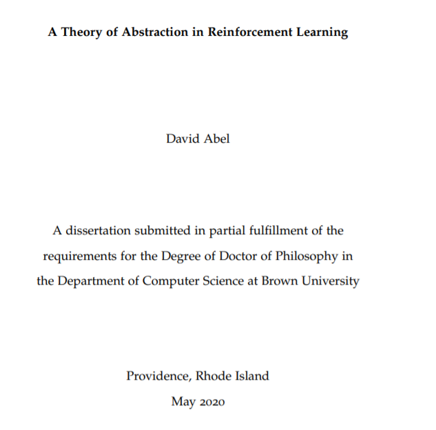 本文作者 David Abel 博士毕业于布朗大学,现为 DeepMind 的研究科学家。他通常研究强化学习问题,致力于从计算学习理论、计算复杂性和分析哲学中汲取工具和观点。