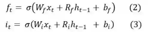 接下来计算遗忘门(forget gate)和 输入门,他们两个都是Sigmoid门: