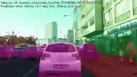 自动驾驶中实时语义分割道路场景。(图源:https://m.youtube.com/watch?v=ATlcEDSPWXY)