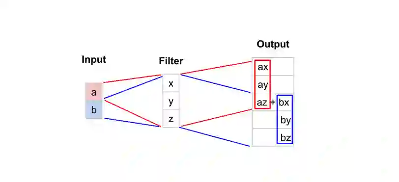 通过转置运算进行上采样的 1D 的例子(图源:http://cs231n.stanford.edu/slides/2017/cs231n_2017_lecture11.pdf)