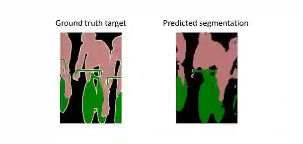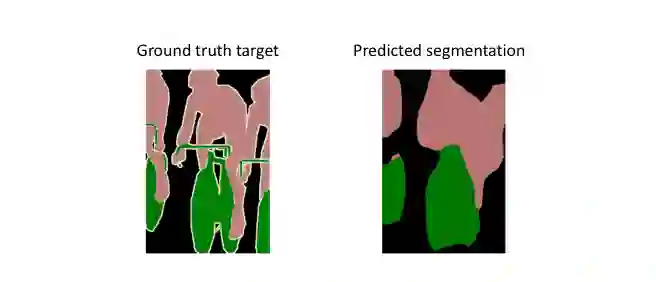 但因为编码模块将输入的分辨率降低了 32 倍,所以解码模块难以产生精细的分割图(如下图所示)。