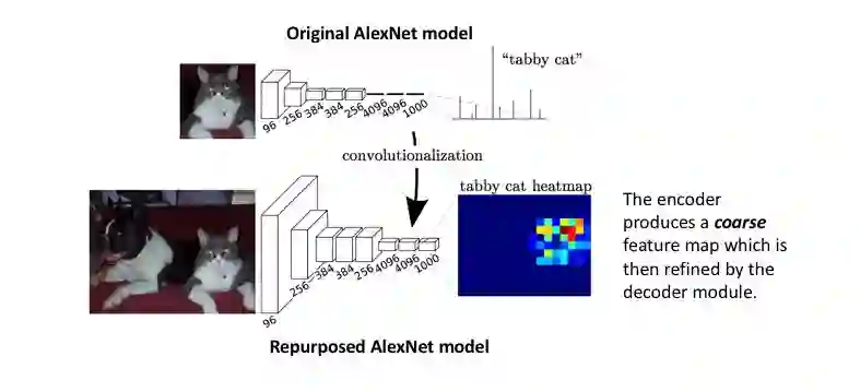 Long 等人在 2014 年末介绍了使用「全卷积」网络对图像分割的任务进行端到端、像素到像素的训练方法 (https://arxiv.org/abs/1411.4038)。这篇论文的作者提出将现有的、经过充分研究的图像分类网络(如 AlexNet)作为网络的编码模块,用转置卷积层作为解码模块,将粗略的特征图上采样至全分辨率的分割图。