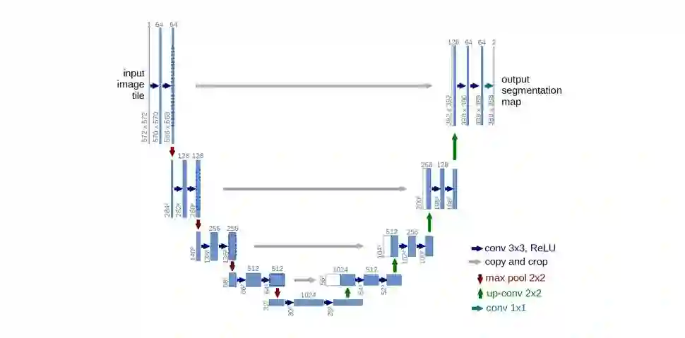 注意:由于使用了 valid 填充,原始架构会导致分辨率下降。但也有人选择使用 same 填充,这些填充值是从边界处图像映射中获取的。