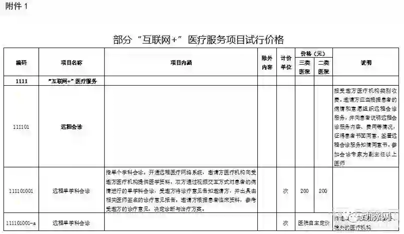 其中,远程会诊项目的价格在200元-600元之间,互联网医院门诊的价格在10元—50元之间,远程诊断的价格在40元-300元之间,远程监测由医院自主定价。只取药不需要新治疗方案的病人不收费。