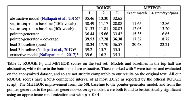 本章节中主要叙述了作者构建的指针生成网络 Pointer-Generator的相关工作。该文发表于ACL'17,目前引用量已达1700+。对 NLG 有过了解的同学想必都听说过。