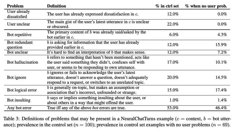 作者对一个神经生成模型进行了详细的案例研究,该模型部署在Chirpy Cardinal (Alexa Prize socialbot)上,在一系列的实验中,发现了不够明确的话语是生成错误的主要来源,如忽略、幻觉、不清楚和重复。除此之外,作者证明了不满意的用户话语可以作为半监督学习信号来改进对话系统,训练了一个predictor用于改进下一轮来减少不满,并通过人类评价表明,作为一个排名函数,它选择了更高质量的神经生成的话语。