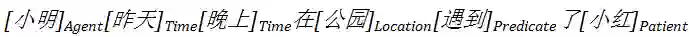 其中, “遇到” 是谓词(Predicate),“小明”是施事者(Agent),“小红”是受事者(Patient),“昨天” 是事件发生的时间(Time),“公园”是事情发生的地点(Location)。
