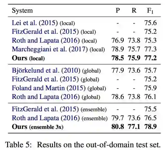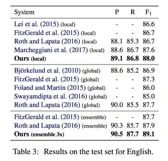 • 在语义角色标注任务,获得了最新的 state-of-the-art