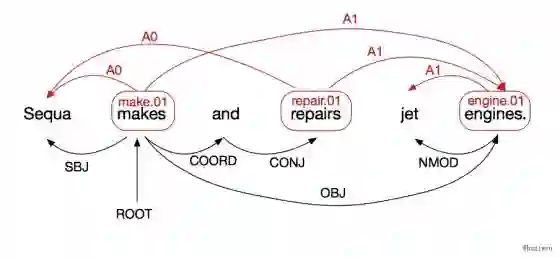 如上图所示,句法分析的结果和语义角色标注的结果,大部分都是镜像的。