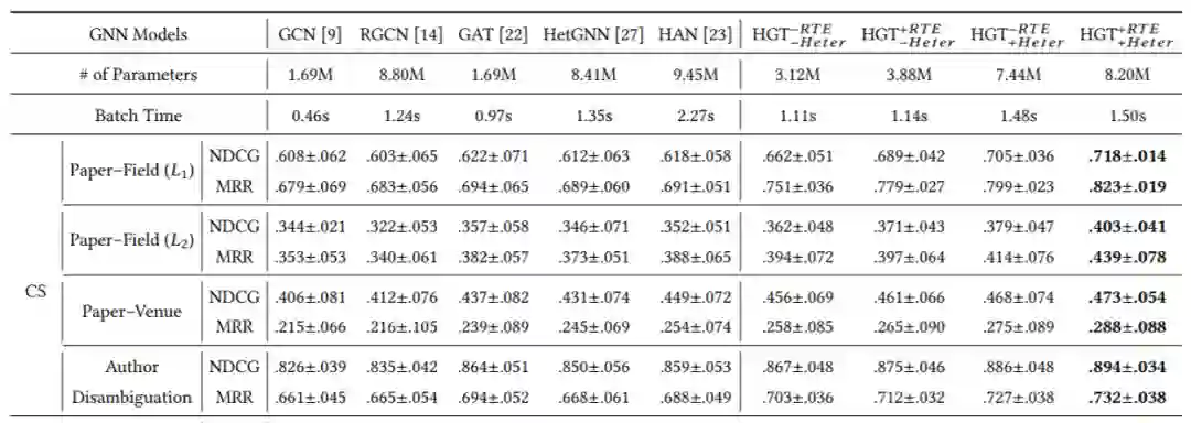 通过 HGSampling,所有的 GNN 模型,包括我们提出的 HGT,都可以在任意大小的异构图上进行训练和推理。