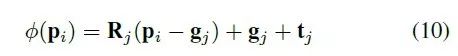 B.图的应用:假设node位置为g,旋转与平移关系为R,t,node影响某点pi的方程可以被定义为: