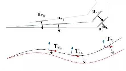 图2. Local trajectory的几何约束。在两个内插的位姿点Ta和Tb可以生成两个surfel模型ua和ub。Local sweep uc和map的先验um之间的几何约束会使整个轨迹适用于地图的先验信息。