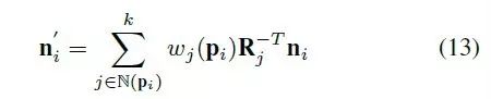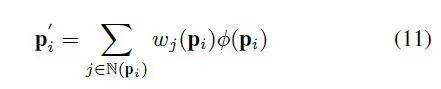同时该点也会受到附近的node,N(pi),的影响,被改变后的pi点定义为