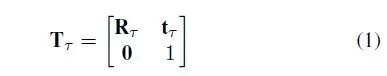 任一时刻的变换矩阵可通过对相邻的轨迹要素进行内插计算,定义为: