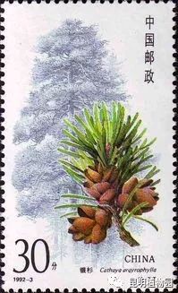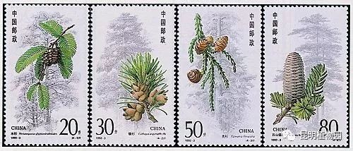 1992年3月10日,中国植树节前夕,原邮电部门发布了《杉树》特种邮票,全套四枚,分别为水杉、银杉、秃杉、百山祖冷杉,邀请了由著名美术家邮票设计家、时任中国科学院昆明植物研究所教授级画家曾孝濂设计。在我国以往发行的被子植物邮票里,表现以花冠为主,“杉树”邮票另辟蹊径,表现以球果为主。曾孝濂选择银杉成熟后期的球果枝,将其置于画面的主要部位,准确地刻画球果的形状和种鳞的数量及排列方式,树形作为远景,描绘了银杉的整体形态。整套邮票具有一种素雅宁静的气氛,《杉树》邮票被评为1992年度全国最佳邮票,获首届专家奖。