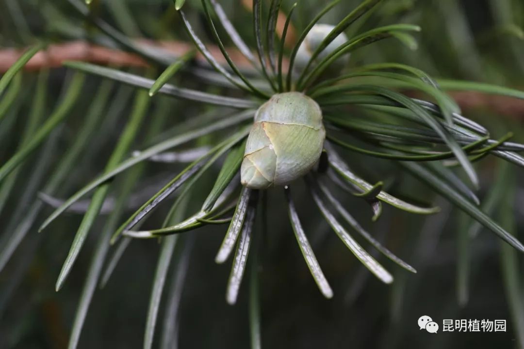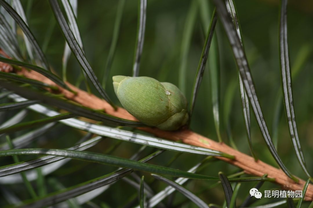 植物园对这些珍稀濒危植物的保护负有义不容辞的责任,而昆明植物园是国内收集极小种群野生植物最多的植物园之一。近日,昆明植物园内1996年引种成活的唯一一株银杉已经结果了,它长势颇好,树形优美,实为园区内一道风景线。这是这株银杉的第二次结果,而去年第一次结果时采集到的所有种子都收纳入中国西南野生种质资源库保存起来。让我们翘首期待这种古老的植物在昆明生根发芽,生长壮大,能使所有人一睹它的风采。