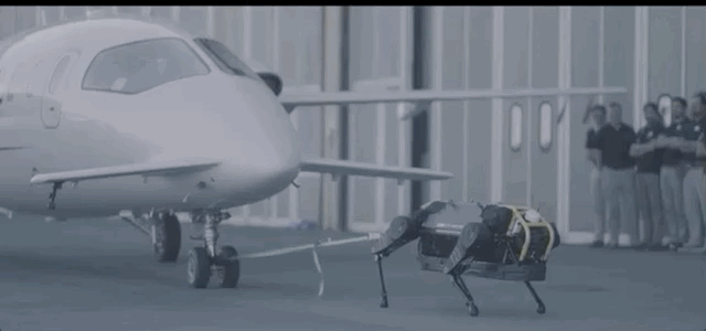 这个机器人可能要比那只狗的动力更强,因为它曾经可是拉动过一架小型客机,还拉动到了10米以上。