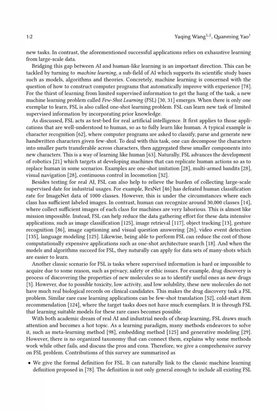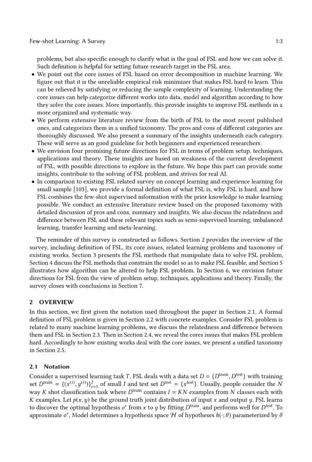 我们给出了FSL的形式化定义。它可以自然地链接到以往文献中提出的经典机器学习定义。这个定义不仅足够概括,包括所有现有的FSL -shot Learning: A Survey problems,而且足够具体,明确了什么是FSL的目标,以及我们如何解决它。这一定义有助于确定未来FSL领域的研究目标。