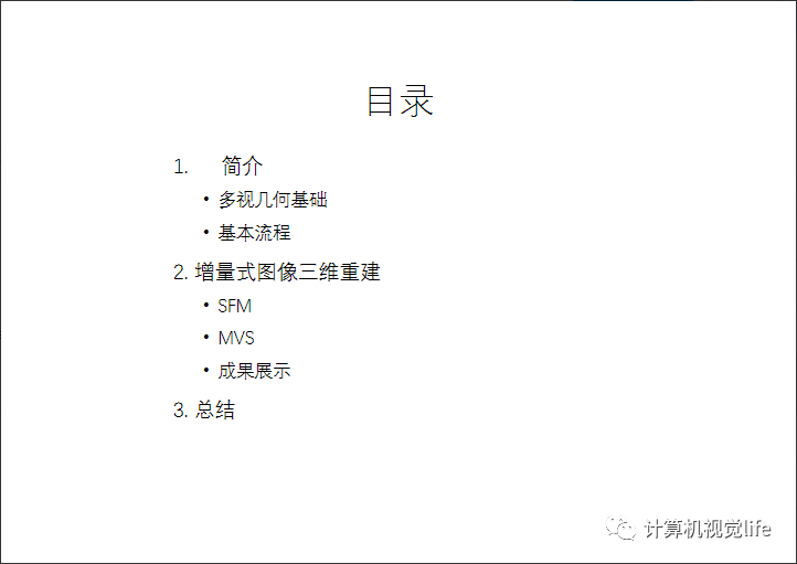 内容:多视角图像三维重建原理及稀疏重建(SFM)、密集重建(MVS)的相关知识