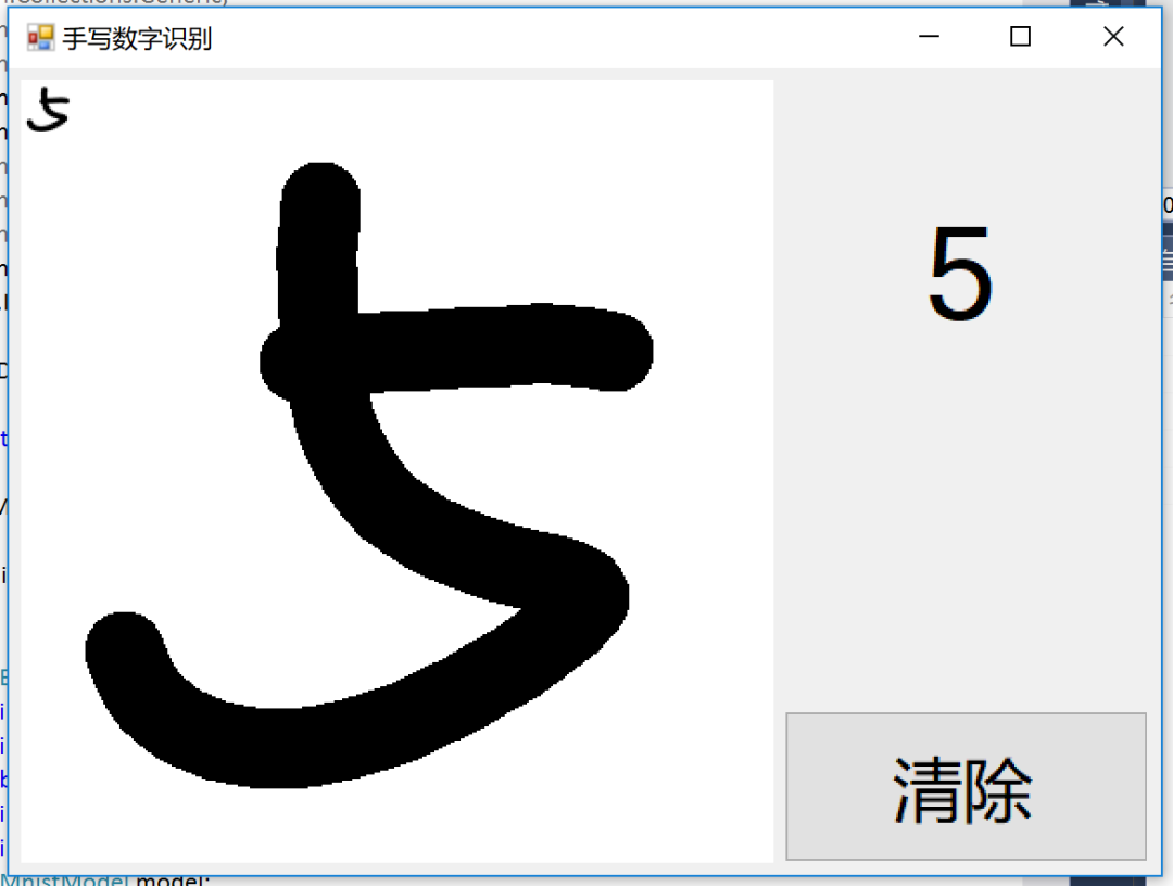 于是,我们在 pictureBox1_MouseUp 中添加上这些代码,并且在文件最初添加上 using MnistModel;: