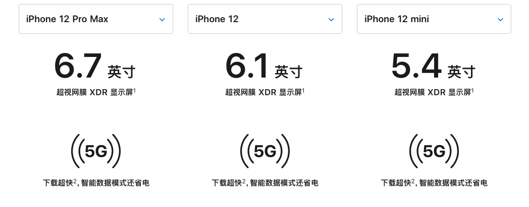 今年的 iPhone 12 系列,一改之前的三机两尺寸策略,变成了现在的5.4英寸iPhone 12 mini、6.1英寸iPhone 12 和iPhone 12 Pro,以及6.7英寸的iPhone 12 Pro Max,共计三个尺寸四款机型。
