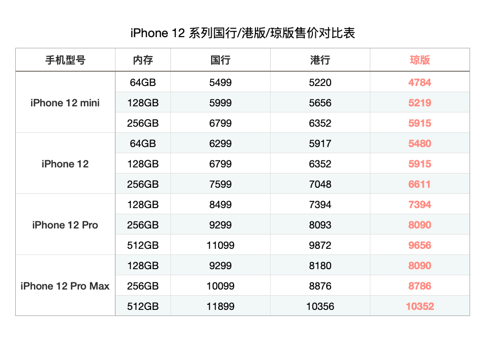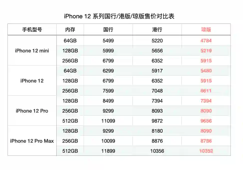 再加上还有港版,国行这些版本,还有天猫、拼多多、京东这些网购平台,一时间场面十分混乱。不过看了看下面的价格表,好像不选琼版天理不容,但实际上,这里面的弯弯绕绕还是很多的。