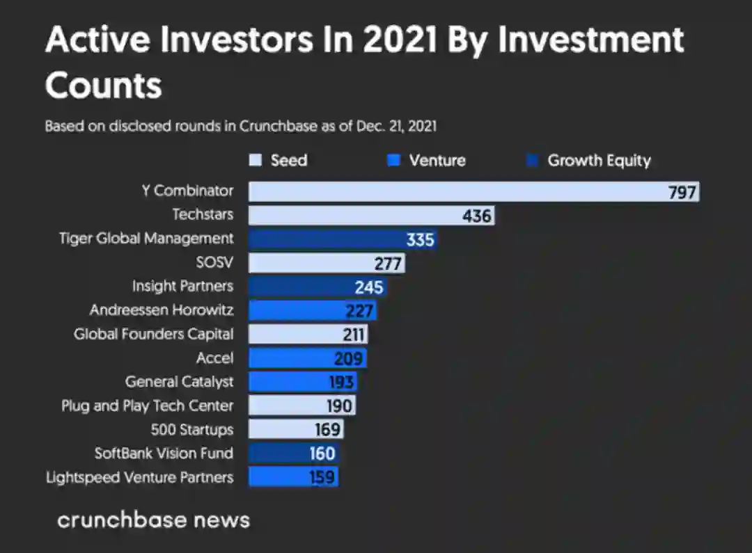 2021年全球出手次数最多的投资机构