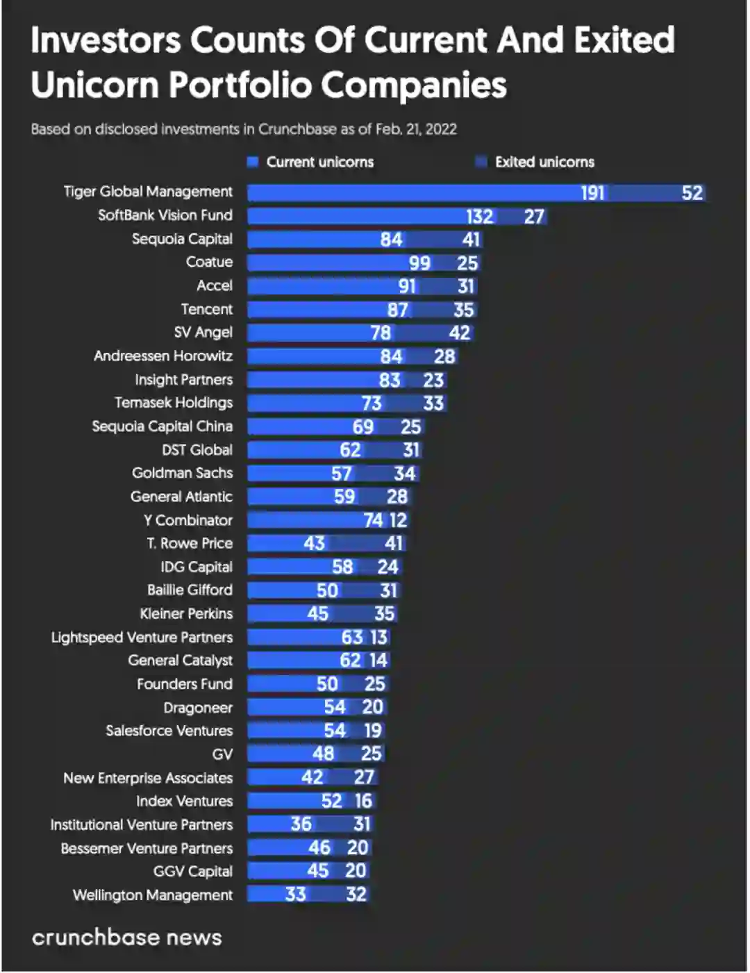 全球参与投资和成功退出独角兽最多的机构