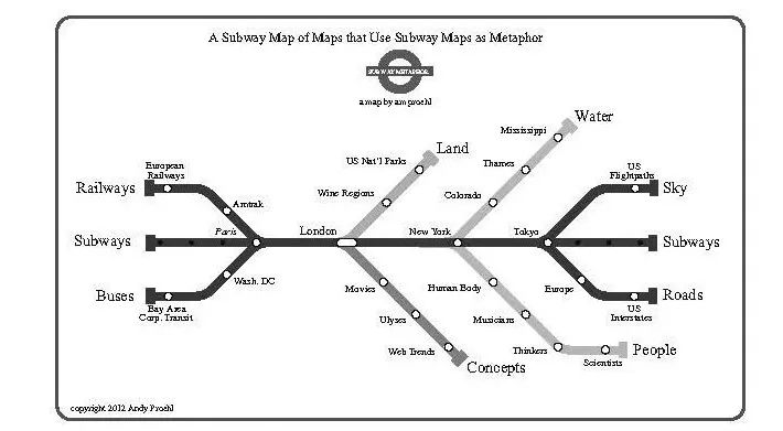 其中最被滥用的形式之一就是地铁线路图,它甚至引发了元层级的评论——“以地铁线路图作为象征的地图的地铁线路图”。